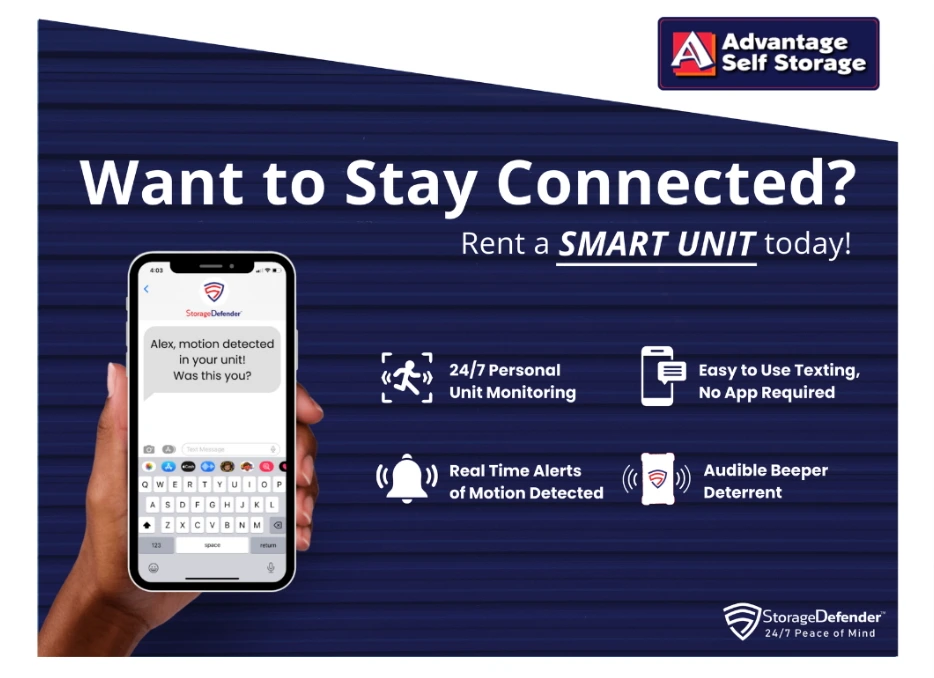 Your belongings matter. That’s why we’ve added more than just a lock—we’ve added smart technology to safeguard what’s important. With Advantage Self Storage, you don’t just rent space—you gain confidence, convenience, and a team dedicated to your peace of mind.
